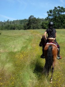Yesterday morning I met my new riding buddy at a new trail head. She tried it out last week and enjoyed it and we figured we would avoid the weekend riding traffic at Lake Oro and check this spot out. Its about 25 minutes from the house, about the same distance as the lake, so either one works. Apparently hardly anyone knows about it and we certainly didn’t see a soul, though the trailhead is right on a road in a neighborhood. There was lots of shade and beautiful fields, a lovely stream, and wild flowers everywhere!