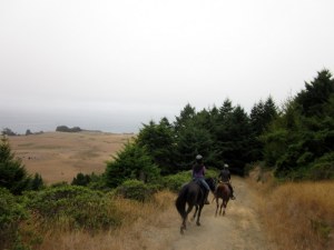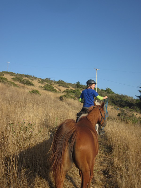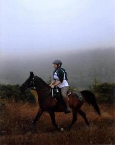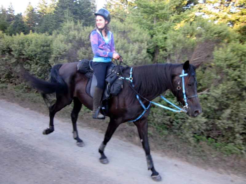Another successful AERC LD ride in the books for Blaze and I. This ride was a different experience for me in a couple of ways. First of all my dearly beloved crew-husband couldn’t come along so setting up camp, photos, and looking after myself was all up to me..hey, that last one is more difficult than it sounds! Reminding myself to be calm and eat–these things usually fall under the husbands purview. The other huge difference was that I was essentially back on “home turf” since I grew up in Mendocino and worked for Lari Shea at Ricochet Ridge Ranch for a couple of years; the ride was based at Lari’s beautiful sea-side ranch Simcha and held on trails that I used to guide trail rides on when working for her. Since I was going to this race alone it was really nice to know exactly where I was going and have at least a vague notion of the trails (its been about 5 years since I rode there). I didn’t remember exactly how steep and non-stop hilly the terrain was but thanks to the cool weather that wasn’t too much of an issue. Little Blaze certainly worked his butt off up those hills though!