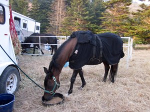 E and A came in not long after I finished and said they had a fun last loop as well and there were no more issues with the horse that got the rub from the boot bag. I cleaned up Blaze and packed up camp and headed for my parent’s house to get Blaze settled at the boarding spot next door and get myself a hot shower! Oh boy oh boy was that a great shower! My brother came and picked me up and we headed back to ride camp for the dinner and awards which was good fun and great food and we got a nifty foldable water scoop with the ride logo on it for completing. All in all it was a great time, beautiful scenery, great weather, well marked trails, and so nice to be home camping and riding among friends! Tomorrow I am taking Blaze out for an evening ride on the beach with a good friend and former co-worker–it will be Blaze’s first time at the ocean (that I know of anyway) so fingers crosses it goes smoothly!