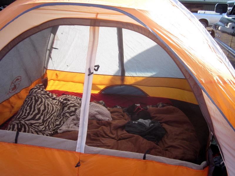 I had assumed E would be riding the 50 miler but turns out she was riding one of the ride manager’s horses in the 30 on Sunday and her young friend, A, was coming down from Eureka to ride E’s horse in the 30 for her first ever endurance ride. Saturday was also going to be extremely crowded with something like 150 riders and a 30, 50, and 75 miler happening. Apparently people showed up without calling or entering the ride and expected to be able to ride so the ride manager was calling around looking for an extra vet, volunteers, etc. I quickly decided switching to Sunday would be much more fun since I could ride with E and A and things would be calmer with much fewer riders that day (I believe there were only 60 or so total riders on Sunday, with a 30 and a 50 happening). E got the go-ahead for me to switch days and got me a new vet card and easy as that we were entered in Sunday’s 30 miler. I got camp set up pretty quickly, luckily our tent literally only takes two poles and its up so I survived that situation, though never had great luck inflating the matress with our ghetto little blower machine. Needless to say the husband usually sets up camp…Friday evening E, A, and I took a little ride up the hill to keep the horses loose and then pulled together a mini potluck for us and A’s dad from our respective coolers.