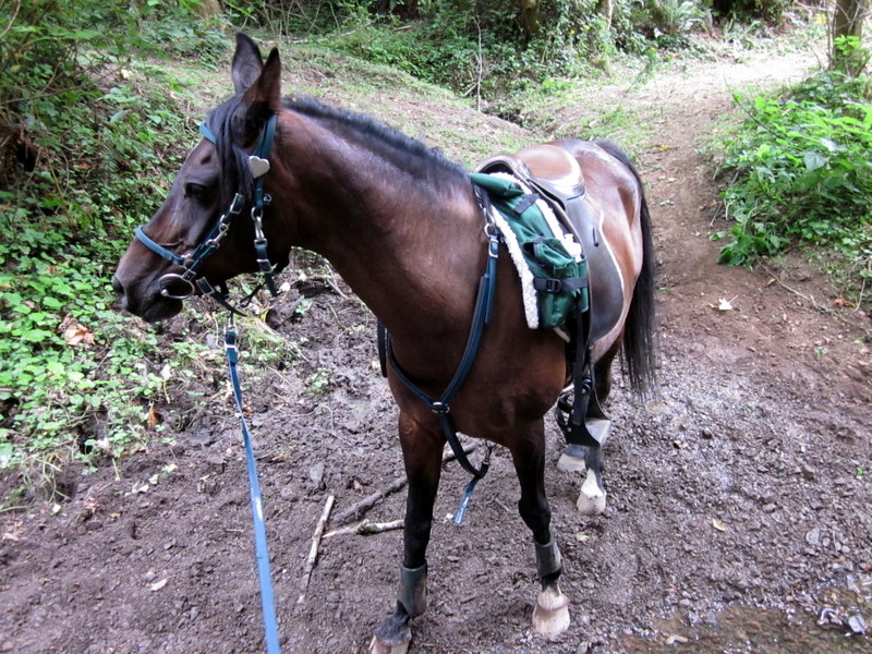 He was really huffing and puffing up the steep hills but caught his breath quickly and was back to jogging the downs and trotting the flats in no time. Towards the end of the ride is the Steep Down trail which is, true to its name, an insanely steep downhill stretch. I mean so steep you get off and edge sideways down it so you don’t face plant down it instead. Blaze was following me down it gamely but looking at me like I was nuts by the time we got to the bottom.