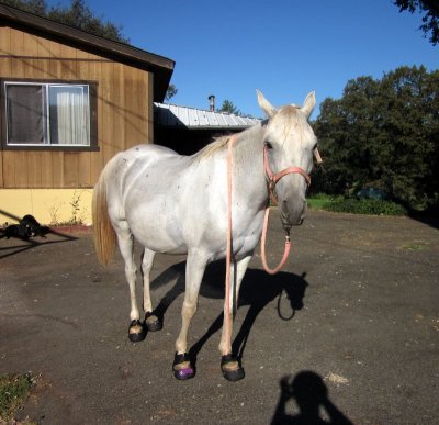 I’m doing a little bit of that today, I must say. It started yesterday afternoon. And was caused by riding Blaze bareback for a few miles through the neighborhood Saturday evening. He seemed to be expressing some “hey me, pick me pick me!” attitude when I was riding Desire in the arena in the A.m. and I don’t have a saddle to fit him well at the moment so I said heck, lets go bareback. I told myself that since he is getting all fuzzy in his winter coat it would make his big pointy withers and backbone more comfortable. The things we tell ourselves, right? I actually love riding bareback in all honesty, its just that I prefer the sofa shape of a Desire over the point withered shape of a Blaze. Still, he needed to get out and I was saddle-less. I had a really fun ride, Blaze is as cool a customer bareback as he is under saddle so we just had a pleasant meander through the neighborhood on a warm but very pleasant fall evening. There were a few snorts and the odd rock got eyeballed but nothing hair raising. I discovered that when riding uphill bareback really wrapping your legs around the horse snugly (without the addition of heels, of course) helps you stay in place quite nicely. No doubt that method is more or less successful depending on the sensitivity of your horse’s sides but Blaze didn’t mind a bit. Downhill wasn’t an issue, I wasn’t going anywhere with that cliff of withers in front of me. I even got ambitious and posted his big bumpy trot for about 1/4 mile! And that was quite enough, I assure you. I love love love to canter bareback, there is no more free and thrilling feeling, to me. Trotting bareback, not so much, especially on Blaze, but we managed. I felt fine when I hopped off of Blaze back in the yard and I rode Desire yesterday morning for 45 minutes in the arena, sans baby. It wasn’t until about 3 pm yesterday when I stood up from sitting at the desk for a while that my inner inner thighs, you know the part you grip with the horse with all you’ve got when trotting bareback, were suddenly feeling tight and screaming a little. Still feeling it this morning. That just means I need to ride bareback more, right?!