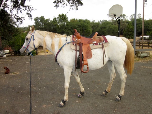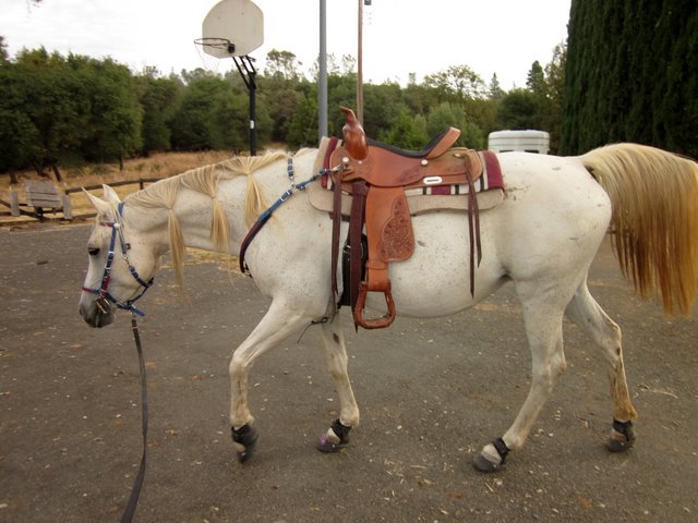 You've been busy, 3 horses (with 2 to ride) is a lot of work! I love Desire, but I love white arabs. My first lesson horse and first actual horse were white (gray) arabs. I also think that saddle is really pretty, I love what they look like, and while I am happy and secure in my dressage-style, I keep my eye out for a western to have fun with.