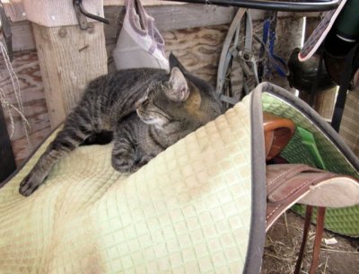 That is one of our many cats, lol. We brought a couple and the lady we bought the place from left us 4, ahem. They are pretty much scarce barn cats though. That cat is Paws, he belonged to my husband before I even met him and boy is he a survivor. And loves him a good comfortable spot. Anything from a backpack to a saddle, if its soft, he is there.