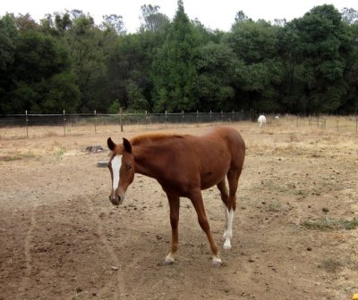 After riding Desire I snagged Blaze out (so far no sign of his past tendency to run like hell from the halter when living in the big field) and went for a bareback ride. Just a couple miles out one of the dirt roads and back. I used the bareback pad this time and it was actually really perfect. Since Blaze has prominent withers and an uncomfortably pokey backbone the thick suede-ish seat of the pad was just enough to make it comfortable while still obviously bareback. Last time I rode with it I felt like it was harder to hold on with the pad on but this time it was nice and I did as much trotting as I could safely. Just on straightaways where I can easily stop him if a car comes, since I’m not a total ninja when bareback riding. Yet. This no saddle thing is turning into the thighmaster supreme workout. Posting Blaze’s trot bareback for 2 miles makes me a hundred times more sore than riding a 30 mile endurance ride does!! I’m going to be walking crooked for four days after this morning’s rides lol.