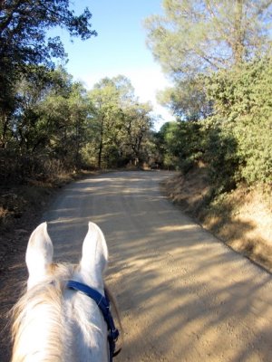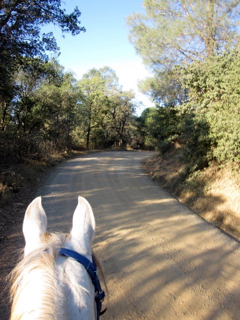 Finally, finally, I am trail riding Desire. To be fair currently its “dirt road” riding, not technically trail, but its still great to be out covering some ground on her! She will have been here a year in January and this week have been my first tons-of-fun excursions riding her off the property without the filly. Yesterday morning we did about 5 miles to the top of the ridge and back and this morning we went nearly 8 miles on the other dirt road that runs just east of our property. Desire is such a BLAST to ride. She effortlessly travels faster than Blaze ever can–even in a hurry–and the few times I had a straightaway to let her really *trot* she was flying and wasn’t even at her biggest extension. Boy I bet she could really rip at a gallop! There are some fun car-free straightaways at the local Wildlife Area I might have to go try that out on.
