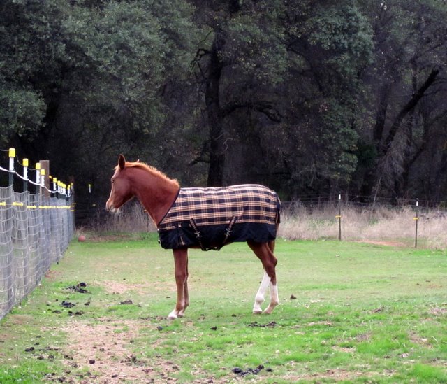 Today its cold and windy and rain is forecast so I just pulled Desire and Sheza and stuck their new winter turnouts on. Sheza’s second blanket attempt fits her but only just, I doubt it will fit by the end of winter..sigh. Desire looks so snazzy in her deep purple blanket, I really wish my camera would accurately capture the color!