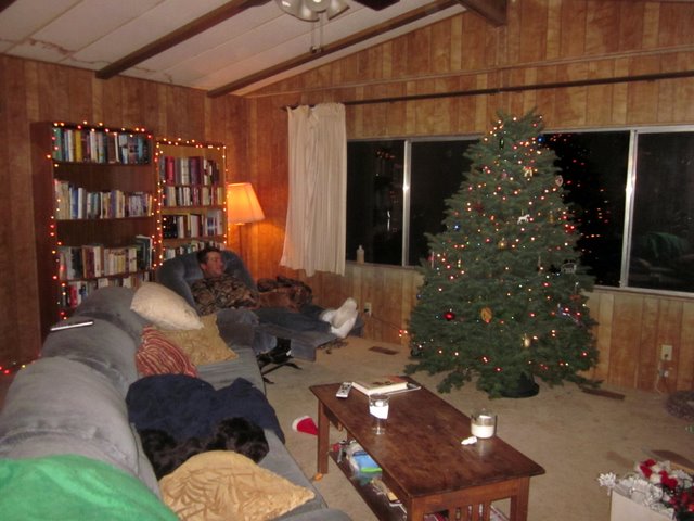 Not only did we get a lovely bushy Christmas tree home, set up, and decorated, my husband scored a like-new sectional Lazy-E-Boy couch and recliner for free from a friend that was moving! So our living room got a whole overhaul this afternoon, with new couches and recliner moved in, old couches moved out into the cabin/master suite (our bedroom), and a Christmas tree set up. It was a pretty exhausting day especially since I started it awake at 2 am feeling awful, but I’m glad it turned into such a productive day! I have really gone to town on the house since I got home a week ago and have re-arranged the living room, dining room, and our cabin bedroom. Now we just need to find some chairs for our dining table and things will be pretty well dialed in. Yes that’s right, we didn’t have a dining table set up like real adults, we–probably shouldn’t admit this–ate on the couch in front of the tv. But now we’ve got a proper table again! And my husband has a proper fly-tying station for his fishing stuff, and the recliner he always wanted. I was planning to get him a recliner for Christmas so now I’m back to square one on a present idea for him! Still pretty happy we scored all this furniture, that stuff can be expensive! I’ll happily trade acquiring free couches and a recliner for now having to wander around fishing and hunting stores in circles trying to find him a Christmas present!