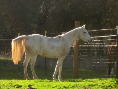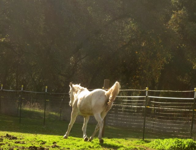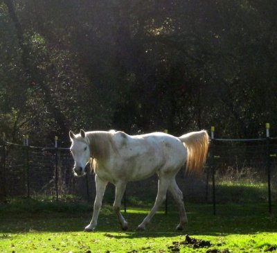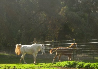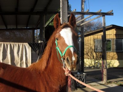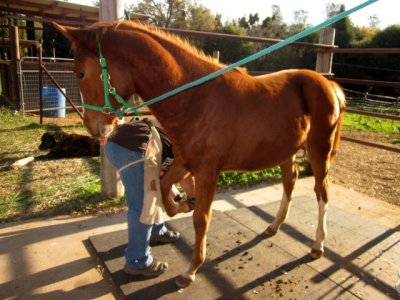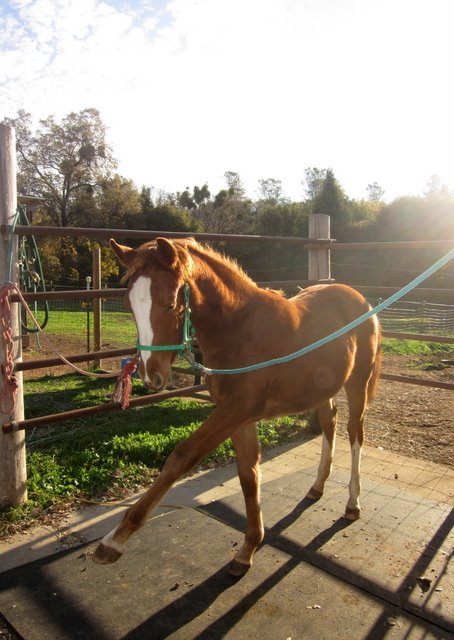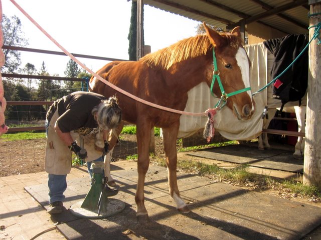 Today the barefoot trimmer came and worked on Sheza and Desire. Good stuff all around. Sheza was a little more sassy than last time but not bad all things considered. She DID gallop up to me from the bottom of the paddock. Then she flipped out when I tried to buckle the halter and ran off. She came back and sniffed me all over like I was a crazy stranger, only then allowed me to put the halter on. Sigh. Whatever. Drama first, brain in gear later.