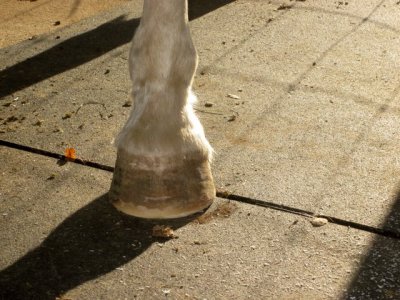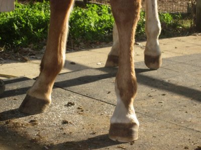 Desire's feet look much better from the front! Much less flared. Are they getting some concavity? How is she moving over rocks?