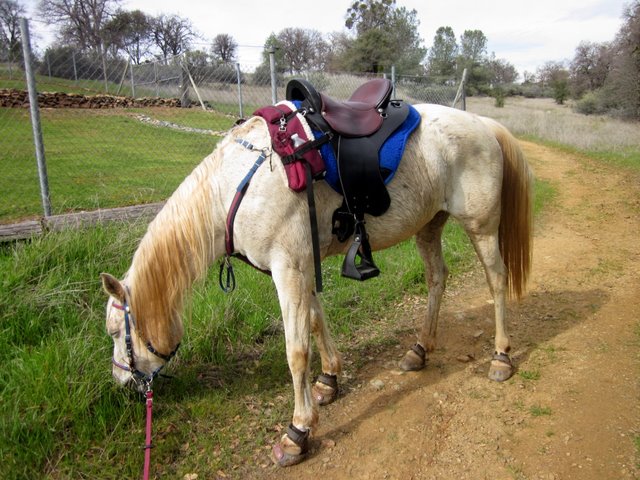 Towards the end of the loop I saw another endurance buddy out walking with her daughter and grand kids, leading her grand daughter on her elderly Arabian. She lives in a gorgeous house just off the lake trails (so jealous of her access) and has a Mustang/Arab filly just a few weeks younger than Sheza. It was nice to see her and hear I would be seeing her and her Foxtrotter at the Whiskeytown Chaser ride in April.