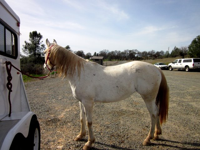 Lately she has been hopping right into the trailer without any fuss, on the way home she thought about being a brat and swinging herself sideways when I asked her to load but I just pointed her straight at it firmly again and she hopped in.