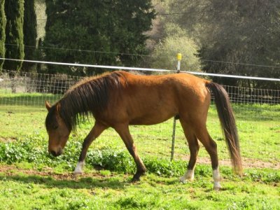Joey has been here for 2 weeks now and it’s hard to say if he has gained much weight, that’s really not very long after all, but he’s been socking down the hay, grass, and warm mashes twice a day. Since the sun is finally shining after a very soggy week I decided to take a few pics for comparison down the road   🙂