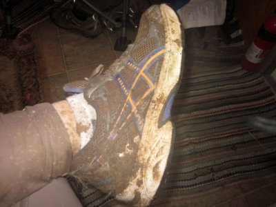 Soggy sneakers..note the coating of white hair at the top of my shoe heel..yeah Desire is still shedding..lol