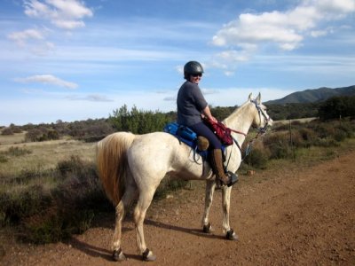 We saddled up late Thursday morning and took the horses out for a leg stretcher. A’s stallion, Alamahn, is such a handsome guy and he moves beautifully. He is a really quality horse citizen as well as being a beautiful stud, A has done an amazing job with him. We rode side by side on mare and stallion and chatted away, no issues. They camped great together too.