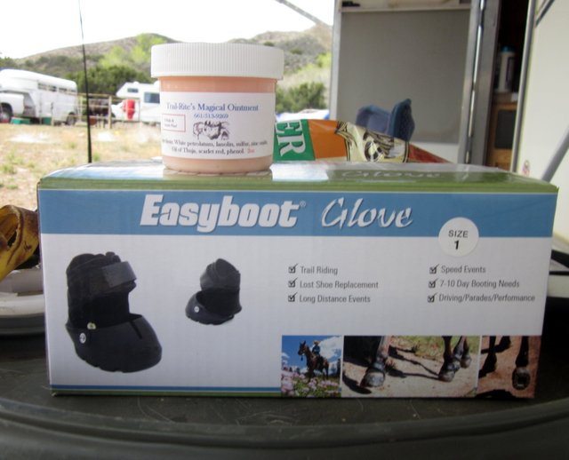 I hadn’t gotten a spare size 1 Glove for Desire before the trip as I had intended, but we were camped across from Trailwise Tack and the nice lady there sold my a Glove and let me borrow her fly spry–major oversight, there were gnats and should have brought our own–and also gave me a sample of her homemade fly deterrant/healing salve which I’ll have to try. Desire gets sores on her belly from the bugs in the summer and I have to keep something on it at all times. I usually use War Paint but I’ll try this stuff too!