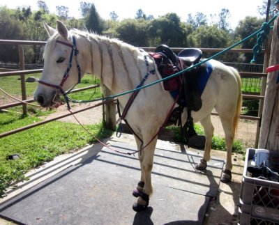 The photo below looks ordinary BUT it’s just simply not. Desire spends 98% of her time on the black mats in the cross ties tap dancing, stretching, leaning, just generally expressing her impatience and displeasure. Some combination of being ready to get going and hating black mats, as per her previous owners. So this photo, showing my wild endurance mare *snoozing* on the black mats, is simply priceless. She was so mellow that I got totally sidetracked and took a good 45 minutes to tack up while she just kicked it in the cross ties. A-M-A-Z-I-N-G!