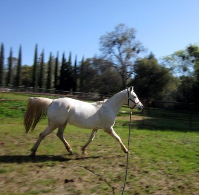 Onto the lunge line, remembering our manners and cues, and boy has she gotten GREAT, attentive, responsive since we started last fall.