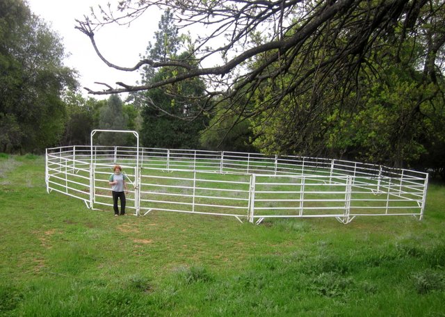 At last. My love has come along! Wait, I mean, a round pen. But seriously folks, I’ve been wanting a round pen for years, and have never needed one now more than ever, with my two spunky greenies to train–that would be Joey and Sheza of course. Joey is already hard to tire just a month after coming here underweight and tragic looking–lunging him can be tiring! Well guess what. Mr. Round Pen has arrived and things are about to get interesting.