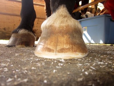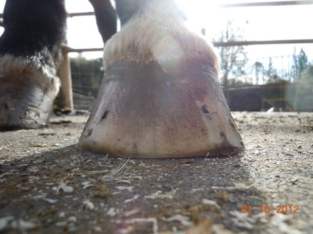 His heels have dropped quite a bit and you can see the healthy new hoof growth is where the crack ends. He is growing LOTS of healthy hoof these days and was well needing a trim at 5 weeks. Good stuff!