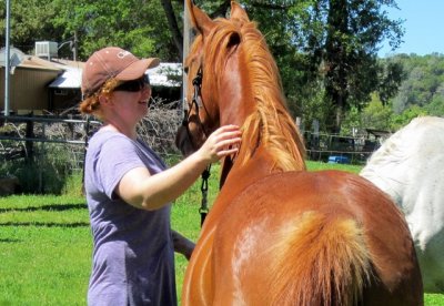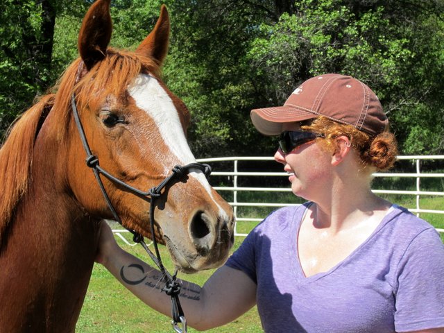 I called it a day at that, having rubbed the blanket over her face and on both sides of her neck, chest, and shoulders. It was seriously warm out and I wanted to end on a win without completing exhausting us both. She was so hot and sweaty I knew it would also be good for another hose bath lesson, so after much praise for the round pen work we were off for the cross ties.