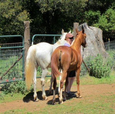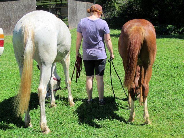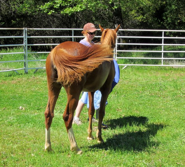 2. So much attitude from such a (not so) small horse! You just have to persevere, good job, maybe next time she'll remember her manners faster. She is looking very grown-up, do you think she'll be much taller than Desire? It was nice to have such warm weather for baths, Major is clean now too, but with even more tap dancing.