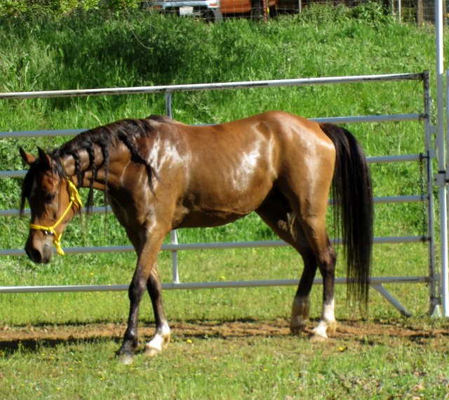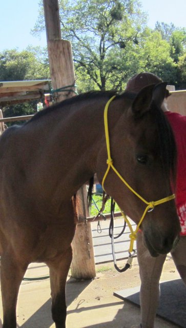 Joey wore his pretty new yellow rope halter. I can finally return the halter he came in to his previous owner..