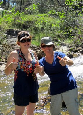 It was really warm by this time so we loaded up in the Polaris Ranger and headed down to the creek to cool off, swim the dogs, and go for a half hearted attempt at gold mining. High 80s, direct sunlight, working on the chain gang for gold..more like swimming hole, a few half-assed prospecting pans, and back home for root beer floats!