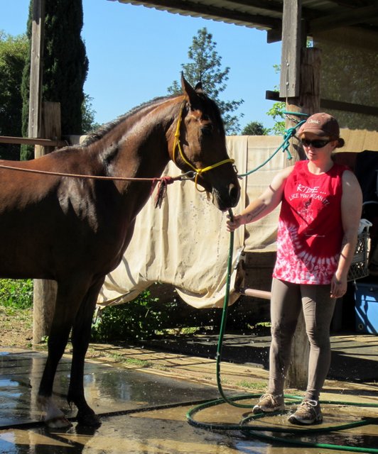 ..and round we went! Joey was first up this morning and it felt stifling hot already at 9 am. It topped out in the high 80s today and it’s been quite an adjustment. Lots of sunscreen and beverages and hosing myself and any nearby horses off.