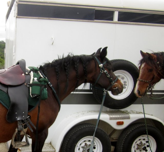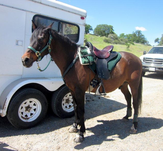 We cruised back into the parking lot at 12.6 miles in 4 1/2 hours, so yes, you could say we were taking our time, hah! It was a great ride though, so good to be out on the trail with C again, and exciting to see how far her gelding has come mentally. And of course happy to have my boy out again. See, he survived:
