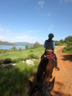 By the time we turned around at just over 6 miles out the sun had come out and it had warmed up quite a bit. Blaze grazed and had a few sips of water along the way, and even peed and pooped out on the trail, which was great. He generally doesn’t do much of any of the above on rides at the lake, no matter the distance, and since he hasn’t been out a whole lot it was nice to see him taking care of himself. He was in great shape end of last summer and has been out enough that I knew he could handle today, but it always eases the mind to see positive signs like eating, pooping, etc.