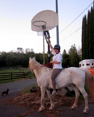 Oh yeah, and on her back I could almost dunk!