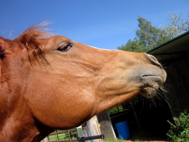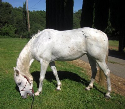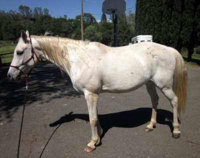 After, with a ladylike bite..mane and tail so much better, yellow spots gone, and her little ankles are so shiny white!