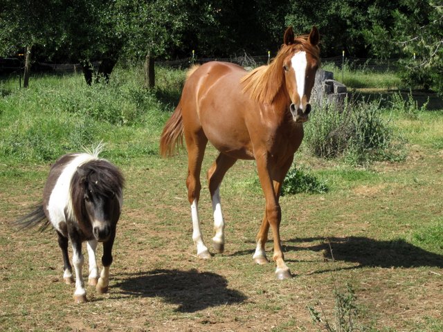 Can I just tell you how magical it is to me that the little black and white punk pictured above is my bratty big filly’s BOSS?! He has her number and pushes her around easily with his little pinned ears and the odd head-tucked, heels-to-the-sky reminder. LOVE IT.