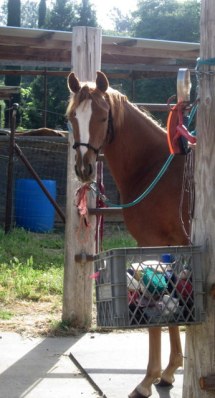 D got some rasping done of Joey’s front heels, much needed as they were too steep. He was doing okay and had his hoof on the hoof stand a few times for rasping but then had a spazzy moment and got pretty dramatic, ended up outside the cross tie stall looking in. Sooo D picked up a hoof again just to make sure he would and I put him back around the right way in the stall but he was done for hooves for the day.