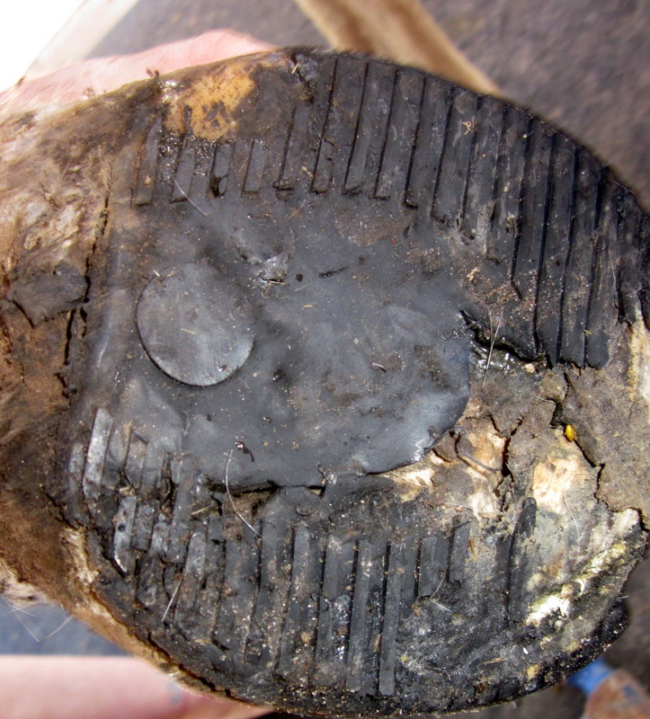 Pulled the 4 Glue-ons off. It wasn’t as bad as everyone had led me to believe, I just stuck a flat head screwdriver in the heel of the boot where it was already separating and from there tapped it with a mallet, wedging it down around the boot to free the boot from the hoof. Desire was great with the fronts, kept lifting the backs in an irritating fashion, but after the first boot I got to where I could work the screwdriver around the whole boot once and pry it off successfully on the first try.