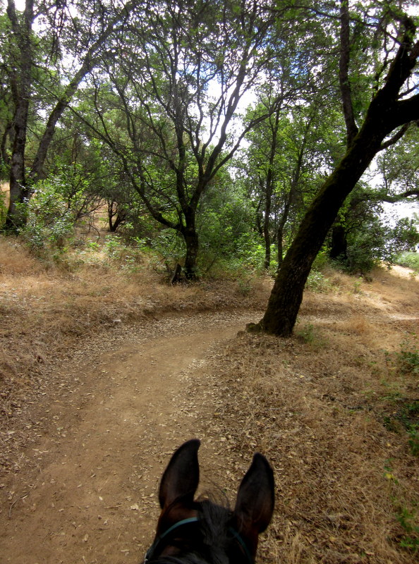 Loaded up Mr. Blaze and met N and Willow at the lake this morning. It was cool and chilly when the sun went behind the clouds, and as we meandered/spooked/stumbled/snorted our way around the 6 mile horse camp loop in 2 hours, it got darker and chillier. N and I agreed we were both ready to ditch the horses and take a nap so we called it after the loop and as I drove home rain drops were falling!