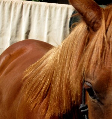 Joey: Joey was great today! While D worked on Blaze I groomed and fly sprayed him and ran my hands, the brush, and the spray all down his hind legs, even his precious right hind. I scooped poop behind his right hind–2 no nos, the right side and the behind, in 1 move!–and he snorted and watched but didn’t move.