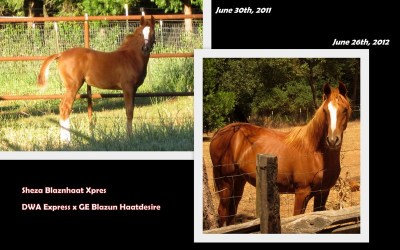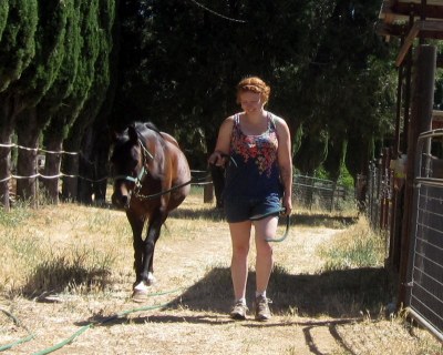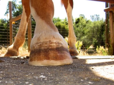 Blaze: his hooves are looking great! His heels have come down so incredibly much since we pulled the shoes. Getting a Glove on him when he first went barefoot was laughable, his heels were so high and contracted, there was no way. He is now going really well in taped (2 wraps), Power-strapped size 1 Easyboot Gloves on the fronts. He goes barefoot in the hinds, even in the LDs. THIS is how booting is supposed to be. He is good with his feet for booting, they go on well, stay on, and are HARD to get off. Hallelujah. Maybe I’ll get there with Desire some day.
