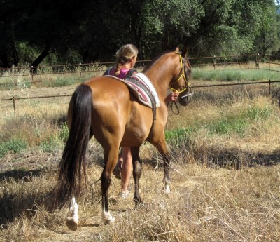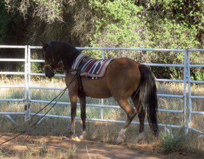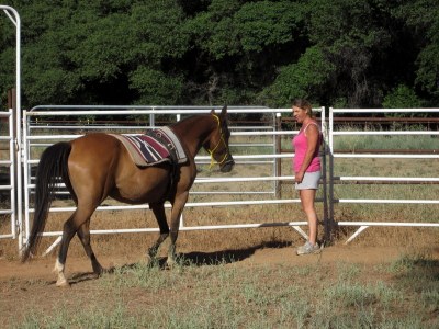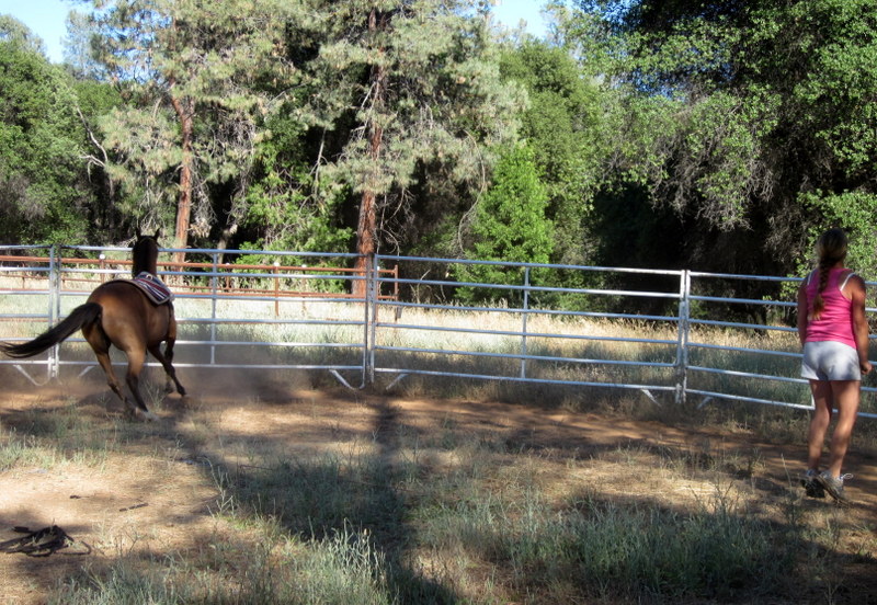 B turned him loose in the round pen, turned her back to him, and started bunny hopping: