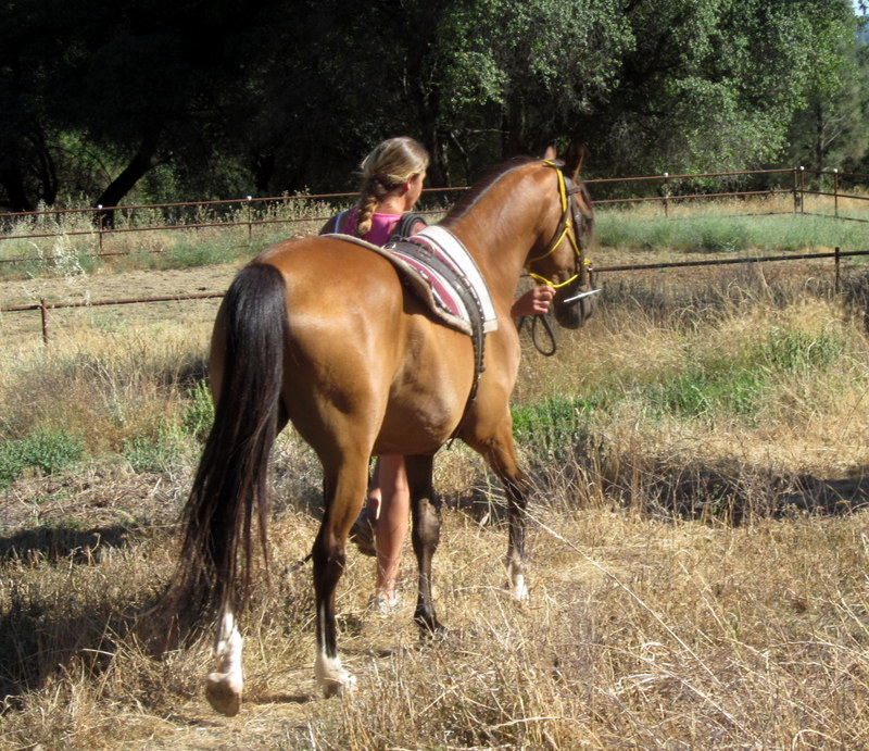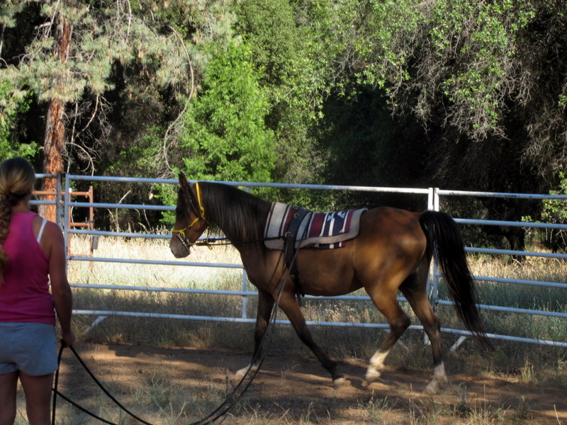 He walked right back over to her after the bunny hopping, and followed her politely around the round pen loose.