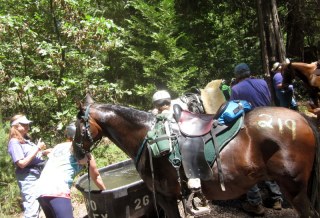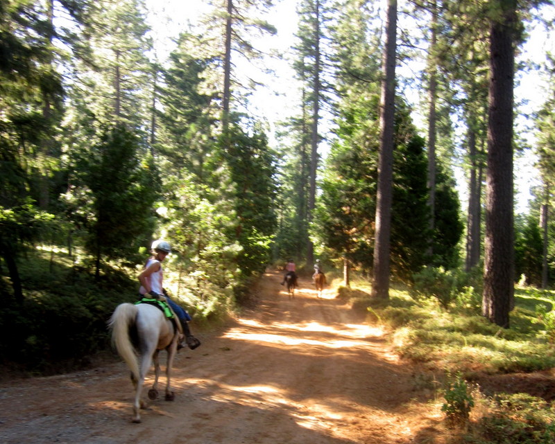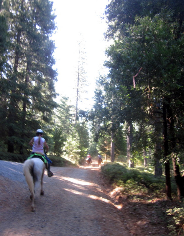 Oh, and the footing? Fan-frickin-tastic! Okay yeah there were occasional tree root/rock sections (very short,) some weird cement blocks kinda half sticking out of a few short climbs (easily avoided), but on the whole the footing was great: either single track trail, shady dirt logging roads, or gravel road, but that was always shady and pretty friendly for gravel road.  Hills were minor, mostly very short, sometimes steep, but we couldn’t even tell which was “Their Hill” as in THE hill of the ride, so that tells you something–and really, after death marching hand walking Desire up Berkeley Hill in the heat of the afternoon, no hill impresses me anymore. Having made rocky Whiskeytown and Hat Creek and the hot hills of Cache Creek a yearly habit, I sooo appreciated the moderate difficulty and great footing of this ride.