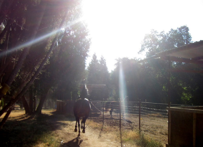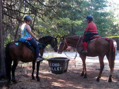 We had an interesting little interaction with a rider on the trail and N and I were both rolling our eyes so hard we might never have gotten them back to the front of ours heads if it had gone on any longer. Out on the trail we came up behind a rider just walking along on her horse so we said hello and proceeded to pass but she immediately let her horse pick up the trot right next to me and then go faster and faster so that all of a sudden the 3 of us were in a foot race. N and I slowed back to the walk, rolled our eyes, and watched as the woman slowed back to a pokey walk not far in front of us. Okay, we decided to try again and this time N merrily announced we were passing on the right, only for the woman to take off again, cut off N, and charge along. This happened a third time and by then we weren’t into this 3 horse race situation AT ALL and in fact were pretty appalled by her trail etiquette or lack thereof. N happened to recognize her later as a longtime rider and Tevis winner, which is ironic in and of itself. Luckily a sharp left turn came up in the trail and we managed to pass her and take off without any more issue.