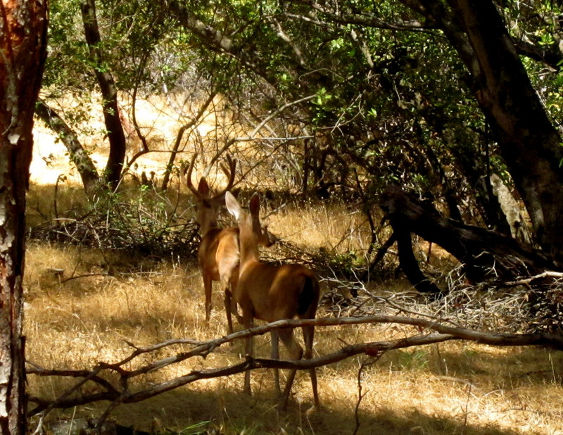 Big antlers on the buck, squint and you can see it..lot’s of deer out today