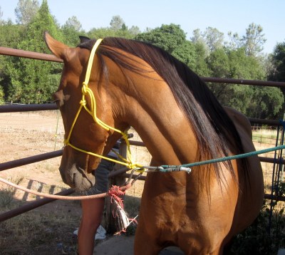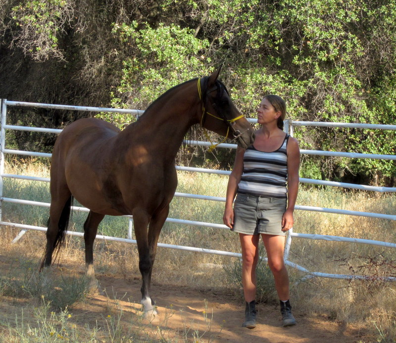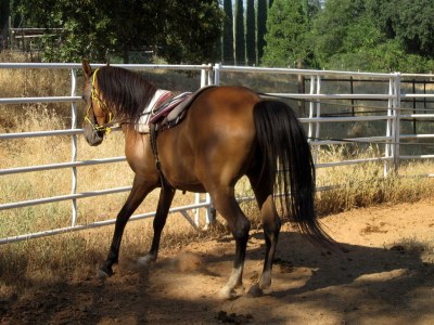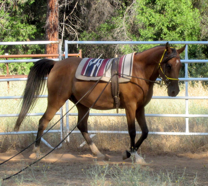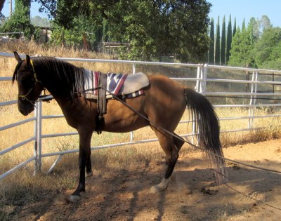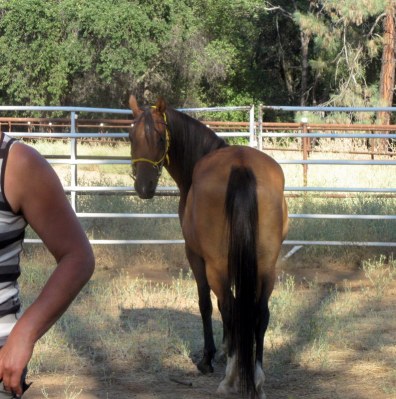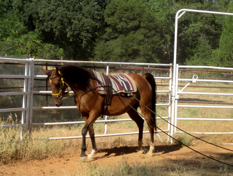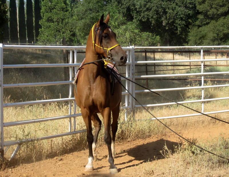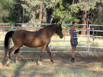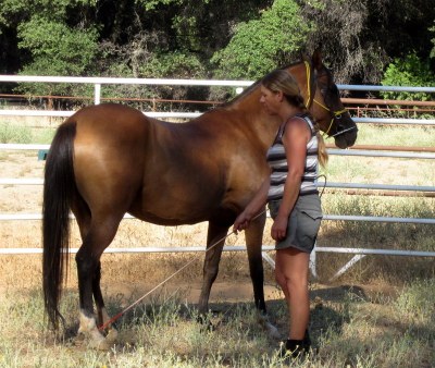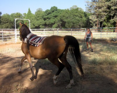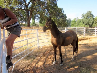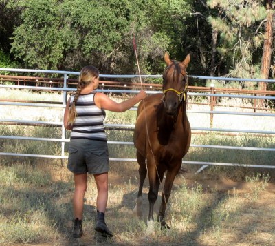 Today B, our trainer, made it out despite the fact that it was about 100 degrees in the shade. Luckily she comes in the evenings and by then the round pen is shady!