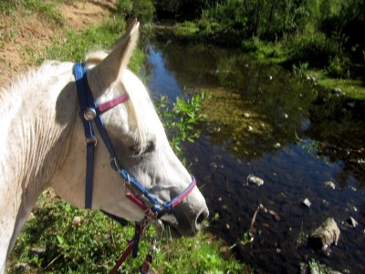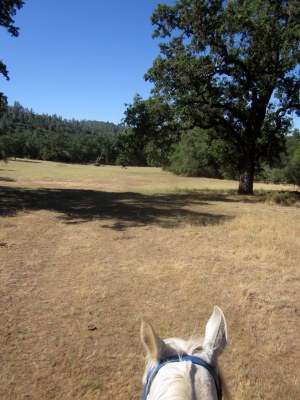 As I said, cattle are run on in the WA. The fencing is remarkably intact and the only access is through two small unlocked, but closed, gates. I dismounted, marched up to the gate, swung it open, and lead Desire through. Ouch, suddenly thought I felt a thorn, but no it really hurt–ohshitcrap it’s a bee! Actually many, as they poured out of a tiny hole in the metal gate I had just enthusiastically swung open. I got stung on the leg and the arm and took off running with Desire, who fortunately somehow escaped getting stung. Now we had ourselves a conundrum. First of all, I had to get the gate back closed since I couldn’t in good conscience leave it and risk cattle getting out. I tied Desire off to a tree a ways away and she circled it irritably but also stopped to pee, which is always good. Meanwhile I ducked back through the barbed wire fence and kicked the gate closed before fleeing back through the fence and to my horse. The real problem of course was that that gate and the other next to it (also covered in bees, turns out) were my only way out, so when I was done riding I had to brave the Bee Gates to get home.