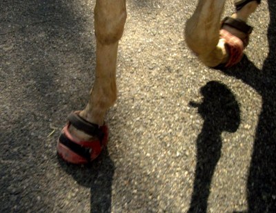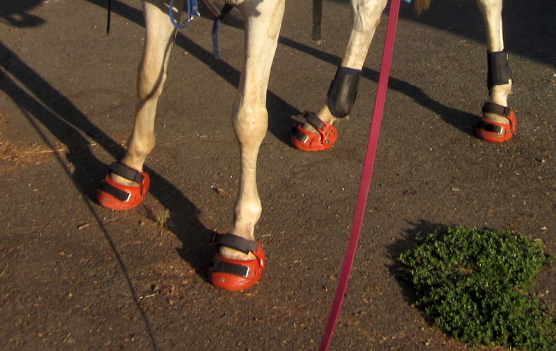 Thanks to some very generous Renegade friends who loaned me boots to try out before committing, yesterday I strapped 2 size 2s, 1 size 1, and 1 size 0 onto Desire and went for a ride. If you’ve read this blog for more than a minute you know that I have been battling to keep Easyboot Gloves (and lately, Epics) on Desire for over a year. She is a foot stomping, trail grabbing, power-trotting fool and the Easyboots fly like hotcakes off the griddle. If I ever do manage to keep them on she gets gaiter rubs, despite my many prevention techniques (slicking, baby powdering, stockings, etc). Then there’s the matter of the Glove shell being so thin that a flatter, thin-soled hoof like Desire’s doesn’t get enough protection. So basically, Easyboots don’t work worth a darn for this mare.