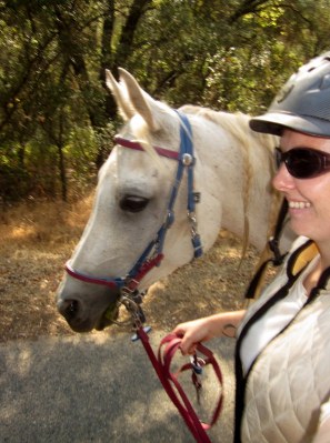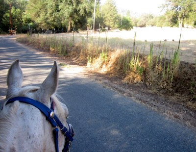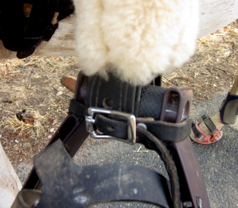 While trotting merrily along my stirrup suddenly fell off. I ride Desire with a death grip in my seat since she is a master swerver (I wouldn’t call it spooking so much as general swerving/eyeballing), so nothing really happened. I dismounted to check it out and turns out the nut fell off the bolt holding my stirrup on. I remembered my stirrups keepers were still hiding out under the fleecy bits on my saddle and buckled them together and then cinched that tight around the bolt and it held the stirrup on like a charm for the ride home.