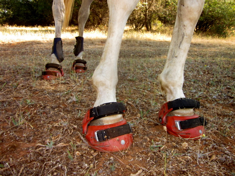 Something else rather important, and interesting, I forgot to mention about Desire’s performance in the Renegades. Where in Easyboots she has always forged, sometimes constantly, clock clock clock clock, so bad we rasped and gave the boots a roll to try to help the break over, as we’ve worked on her break over of course…well anyway in the Renegades, she forges *rarely,* in fact only occasionally uphill. A Renegade friend mentioned noticing that the Easyboot gaiter affected her horses break over and action, which came to mind when I noticed this in Desire. Interesting.