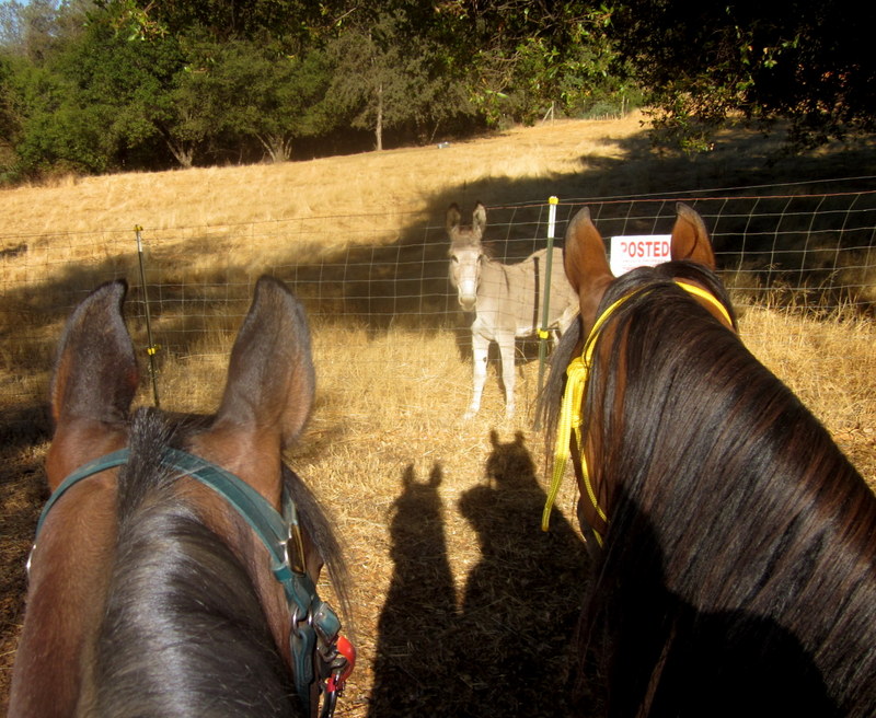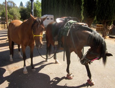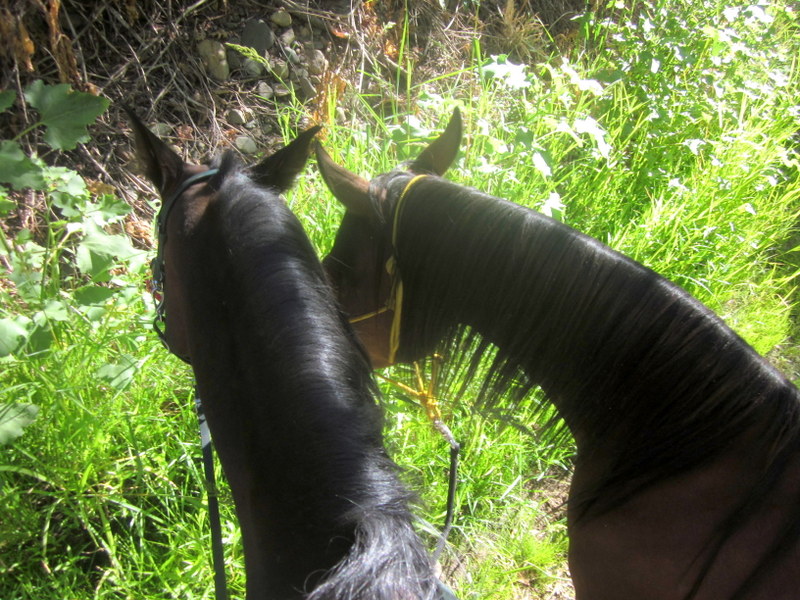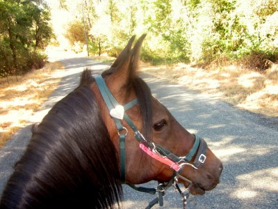 On the ride home Blaze had his Barn Walk on, about twice the speed of his Leaving Barn Walk, and Joey was getting tired. I hate to ever slow Blaze at a brisk walk as it so rarely happens, but Joey would only walk so fast and my arm only stretched so far. Still, we managed, and here is a plum tuckered Joey and a itchy as usual Blaze: